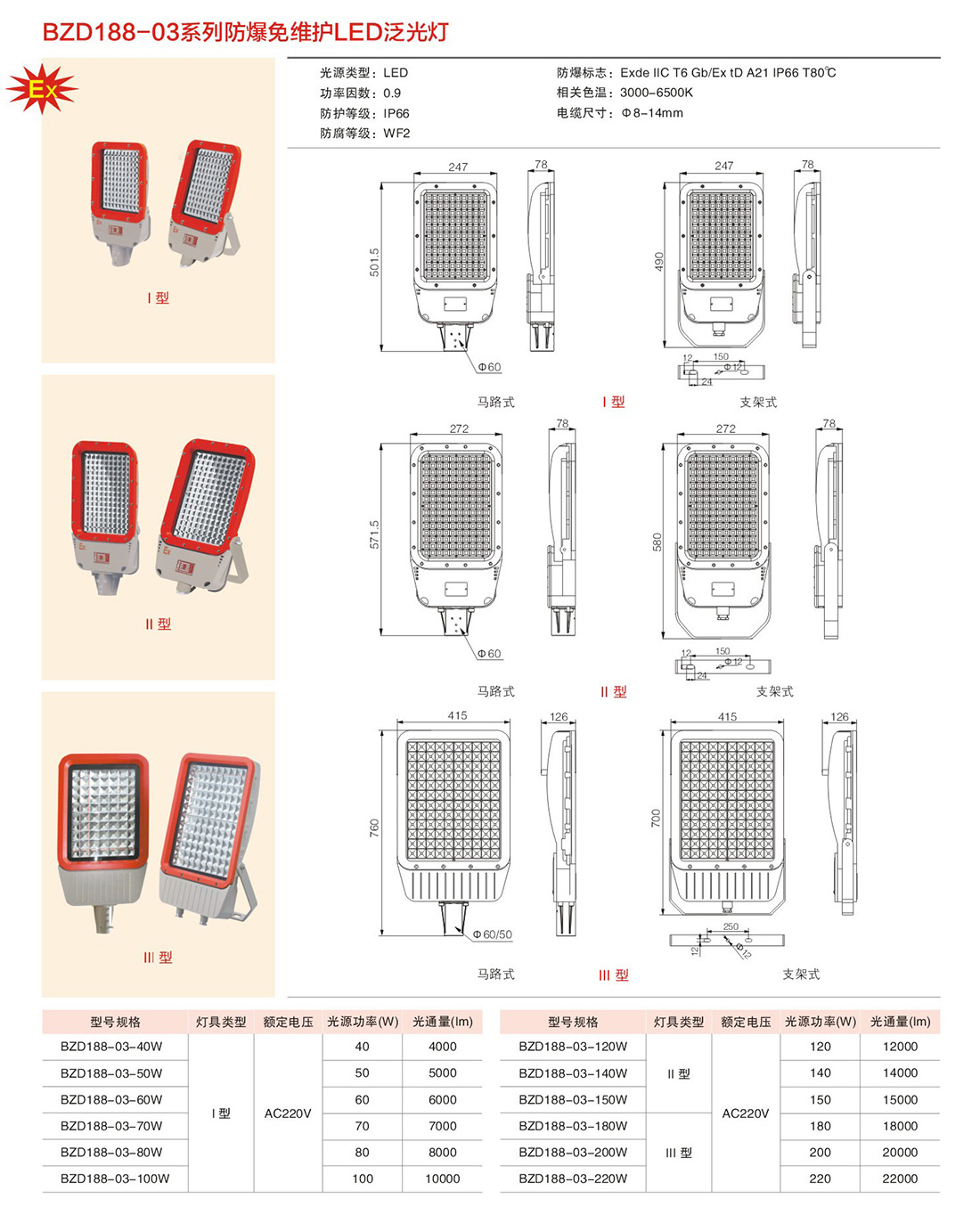 免维护LED防爆泛光灯BZD188-03 Ⅰ型