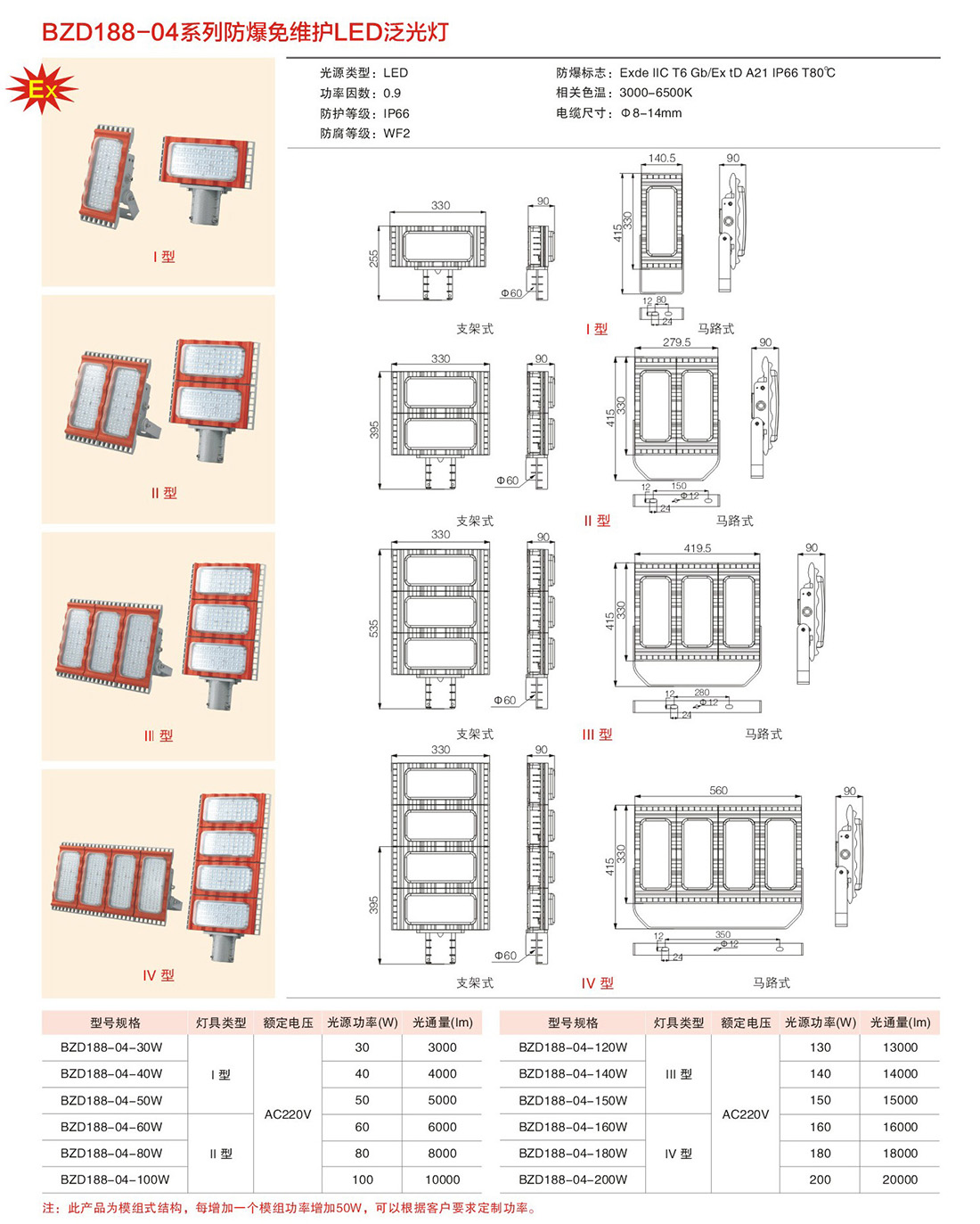 免维护LED防爆泛光灯BZD188-04 Ⅲ型