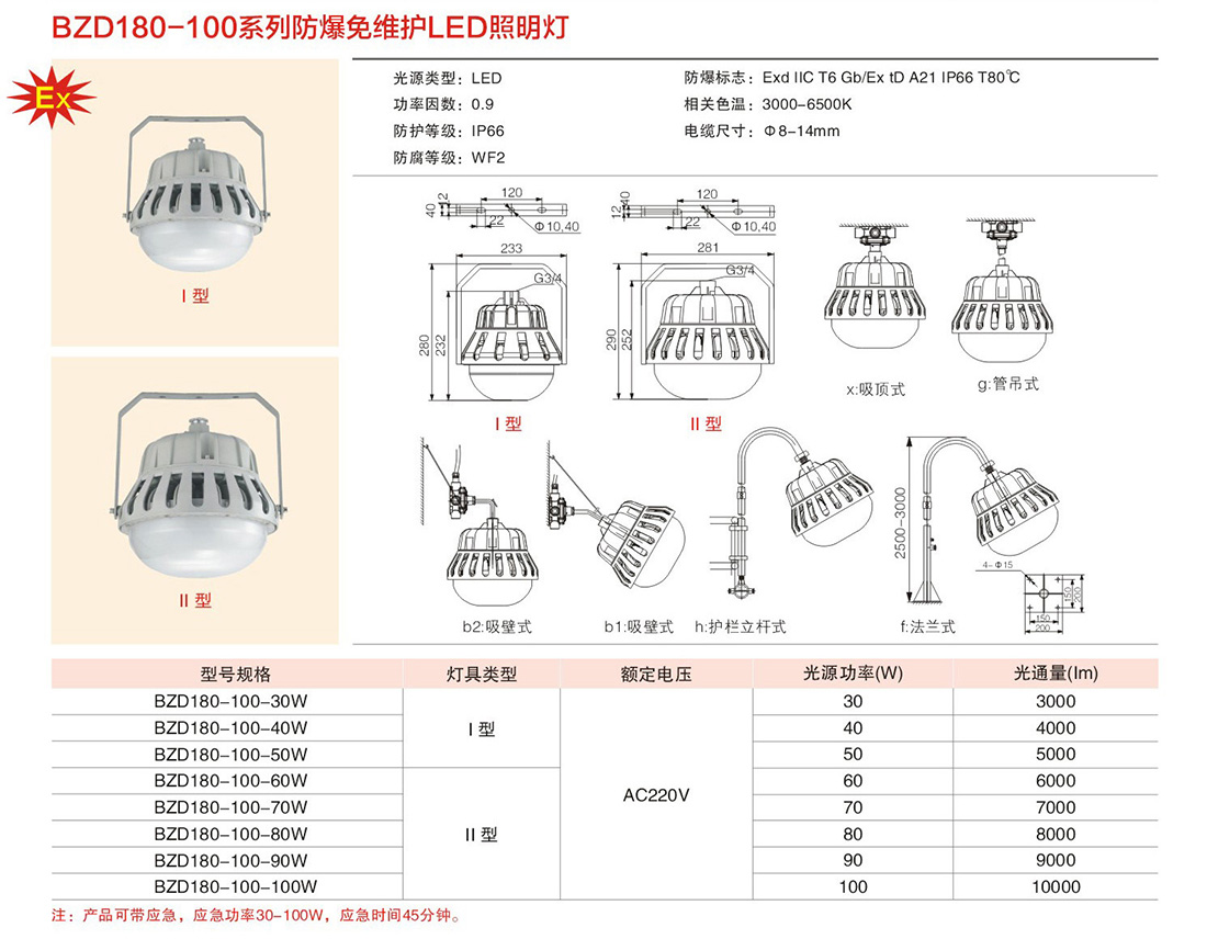 免维护LED防爆照明灯BZD180-100 Ⅰ型