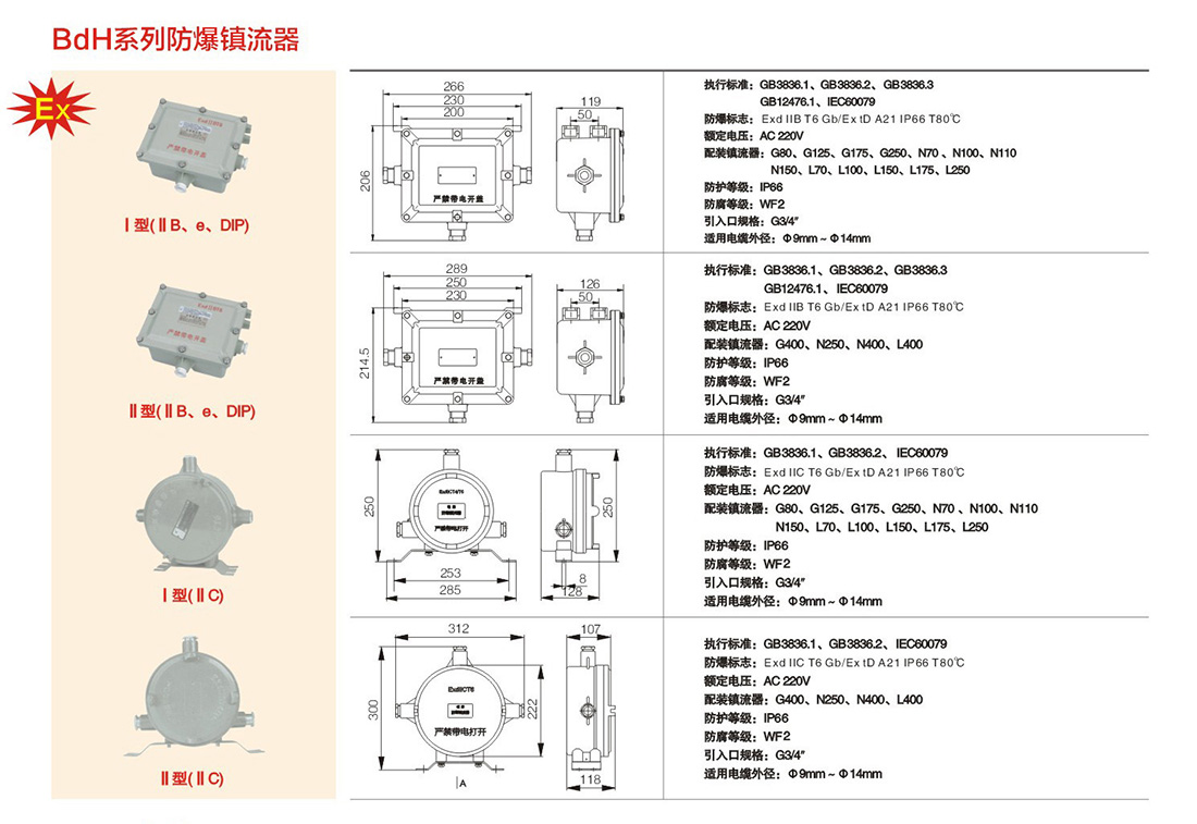 BdH系列防爆镇流器 Ⅰ型(ⅡB、e、DIP)